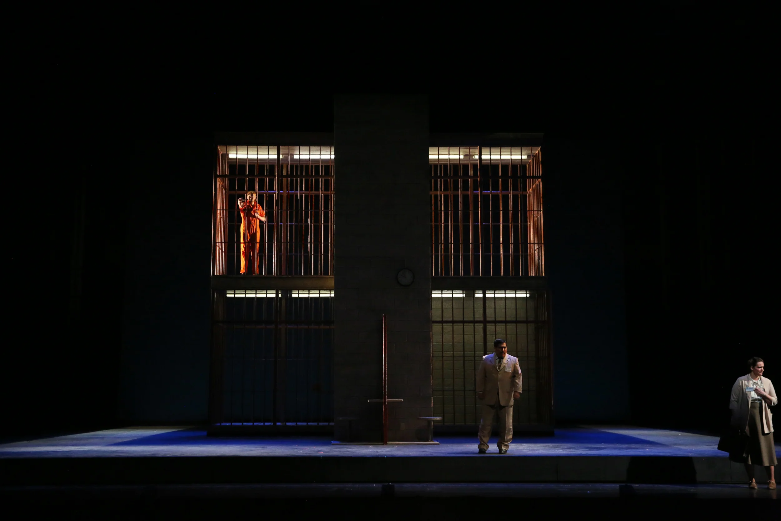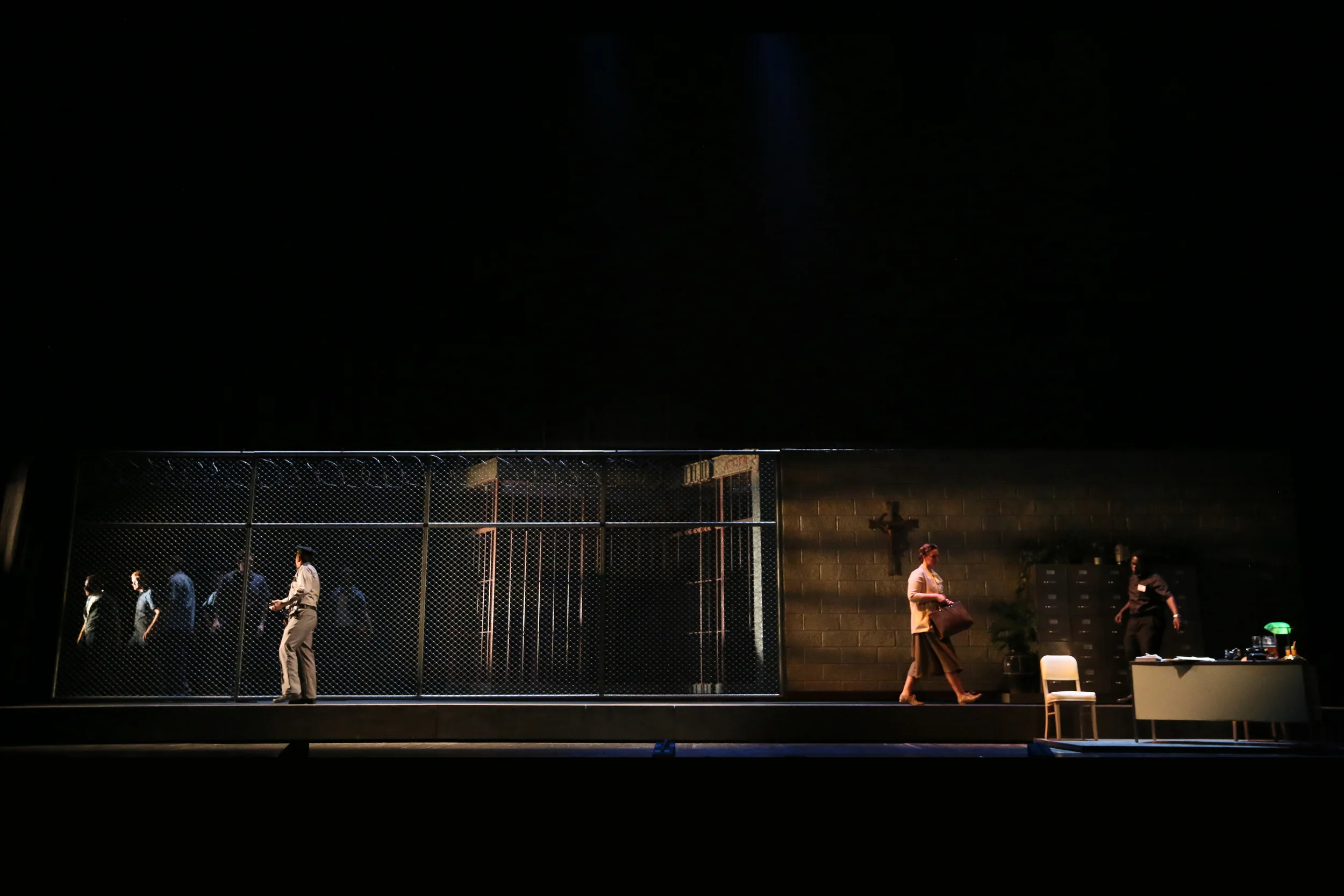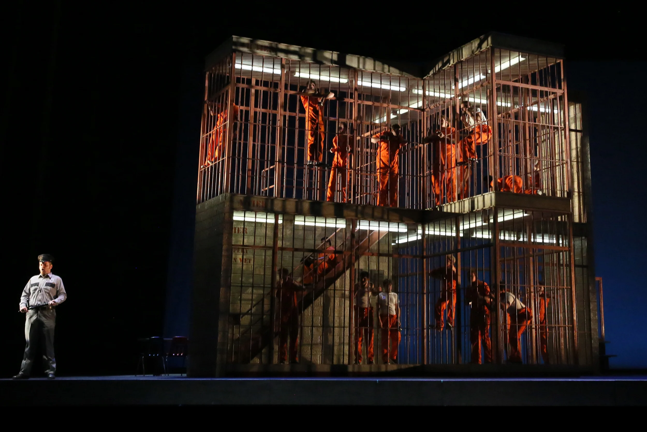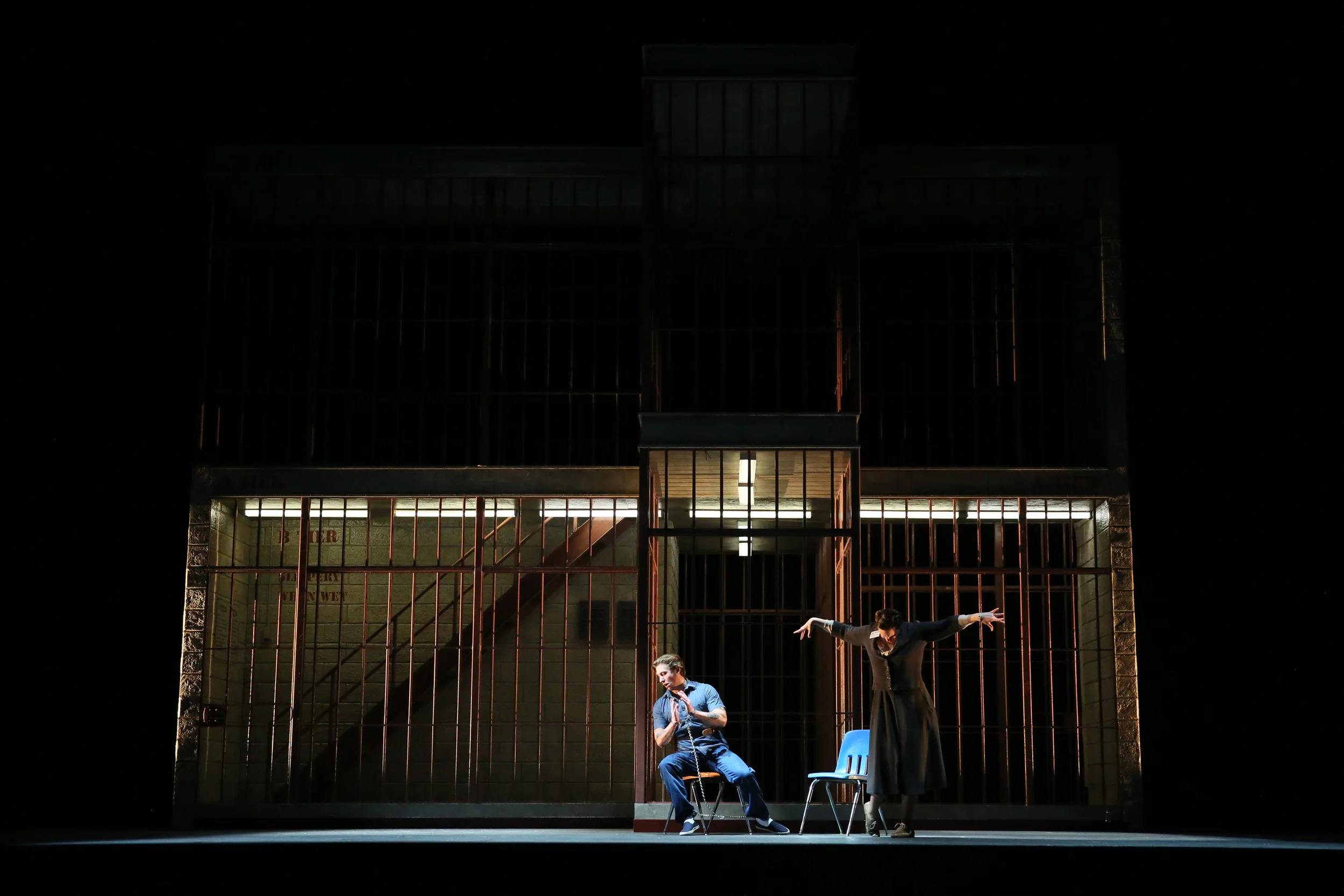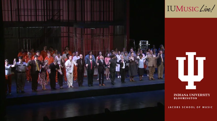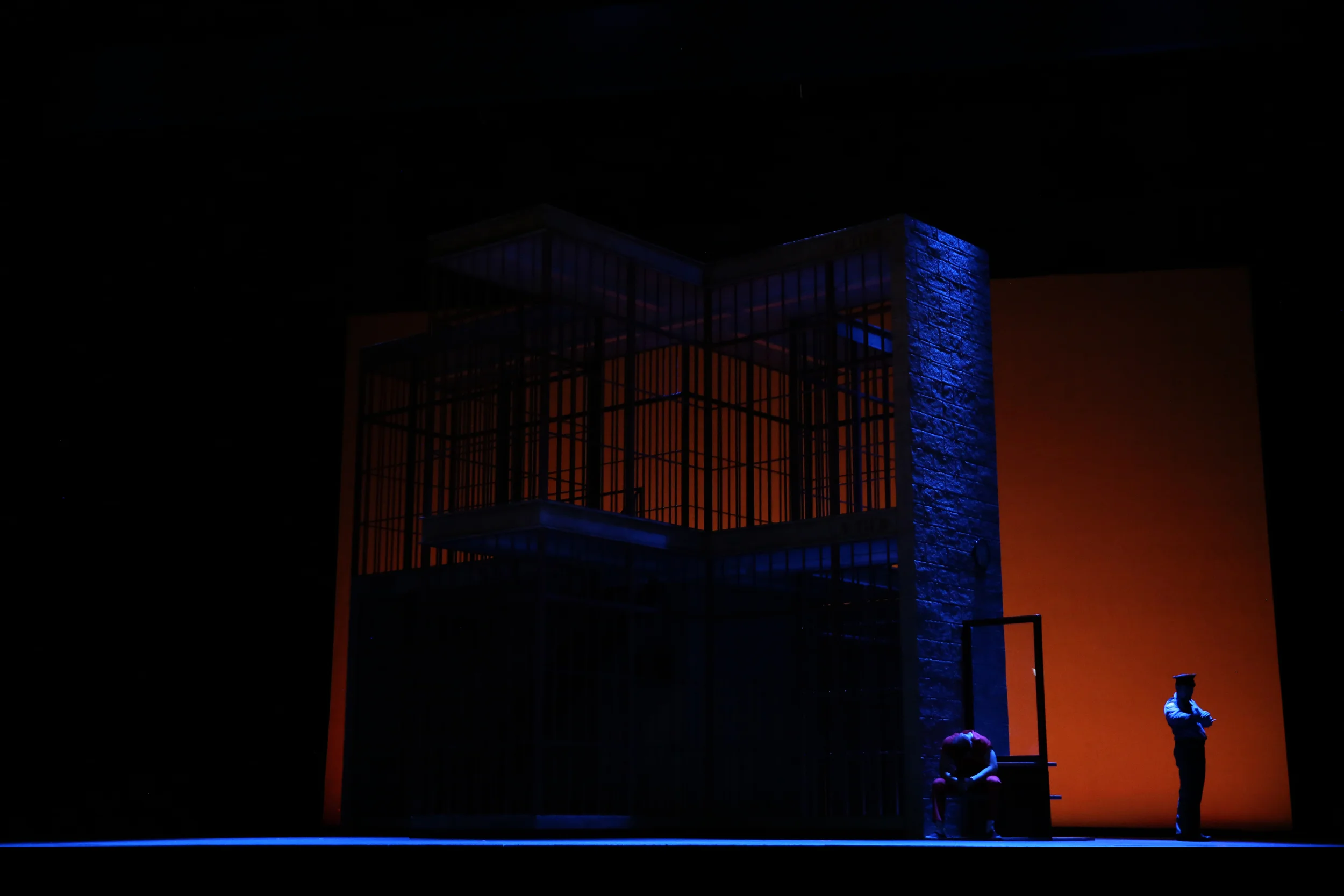 IU Opera Theater’s current account holds blockbuster strengths.A turntable set focused primarily on the penitentiary smoothly revolves from scene to scene so that the performance can move forward without pauses. Visiting designer Steven Kemp, with minimal scenic additions, chose to have the turntable center become the opera’s world, and an impactful choice that was.