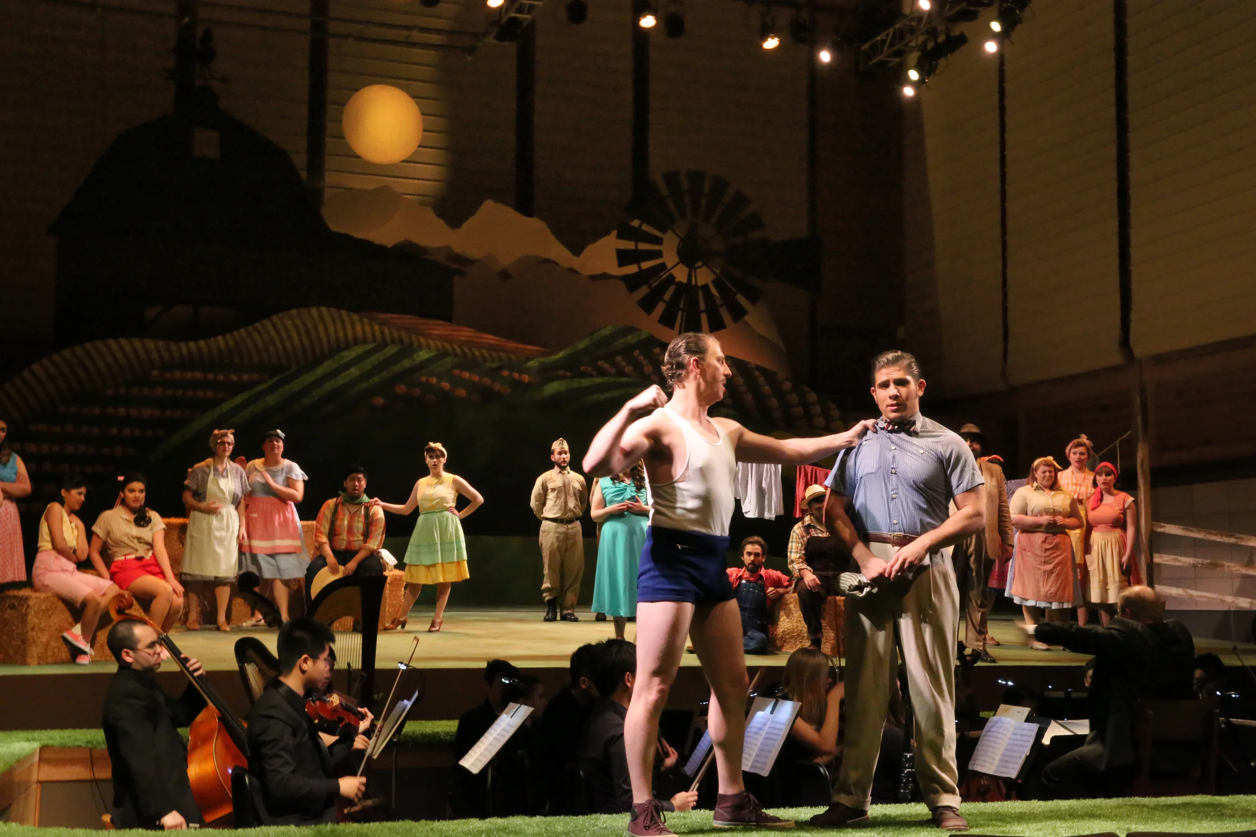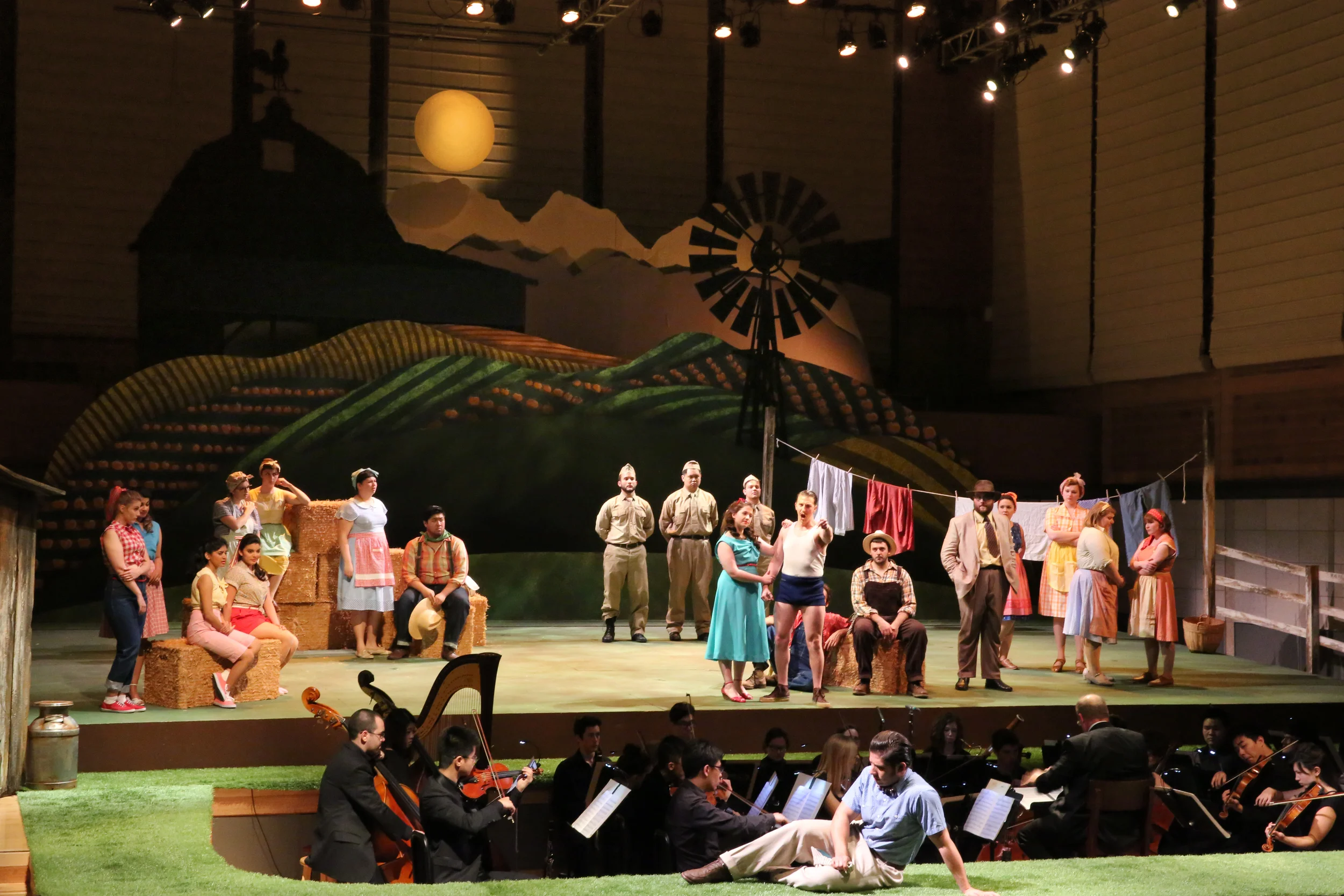 "All-American L'Elisir Charms at S.F. Conservatory...Written relatively early in his career, L’elisir was a precocious hit for Donizetti, its appeal undimmed nearly two centuries later. Like the American flag worked into the painted fields of Steven Kemp’s cunningly designed set, this production proudly waved the Conservatory’s many colors. The stars and stripes, even through some rough weather, flew clearly in sight."
